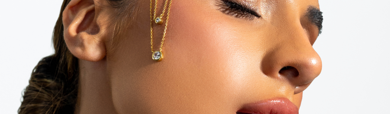 Uma corrente dourada sobre uma gola alta, uns brincos marcantes que iluminam o rosto, ou um anel robusto que transforma o gesto mais simples num statement.